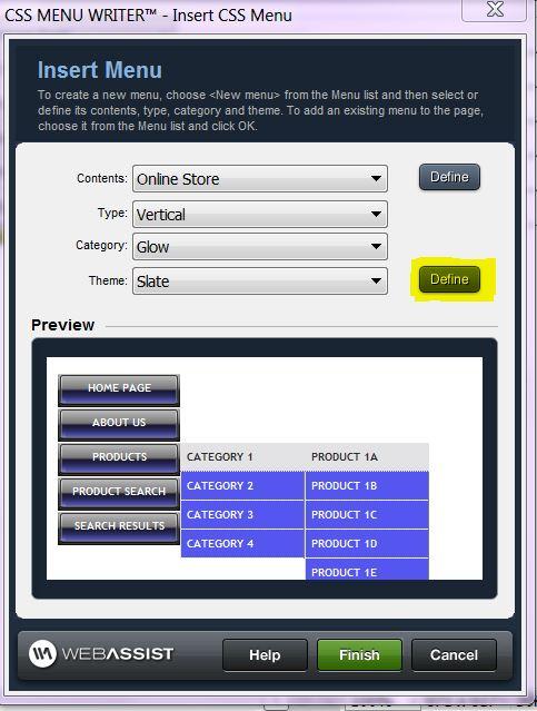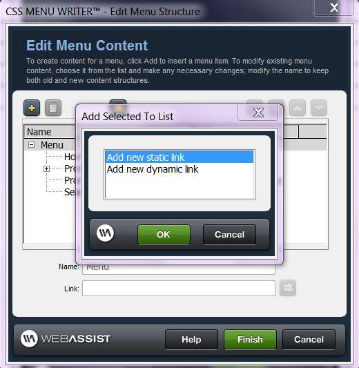 - Once you have customized your menu structure as desired, click Finish to return to the primary CSS Menu Writer interface.