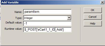 - From the Server Behaviors panel, double-click the eCart Add From Recordset behavior.